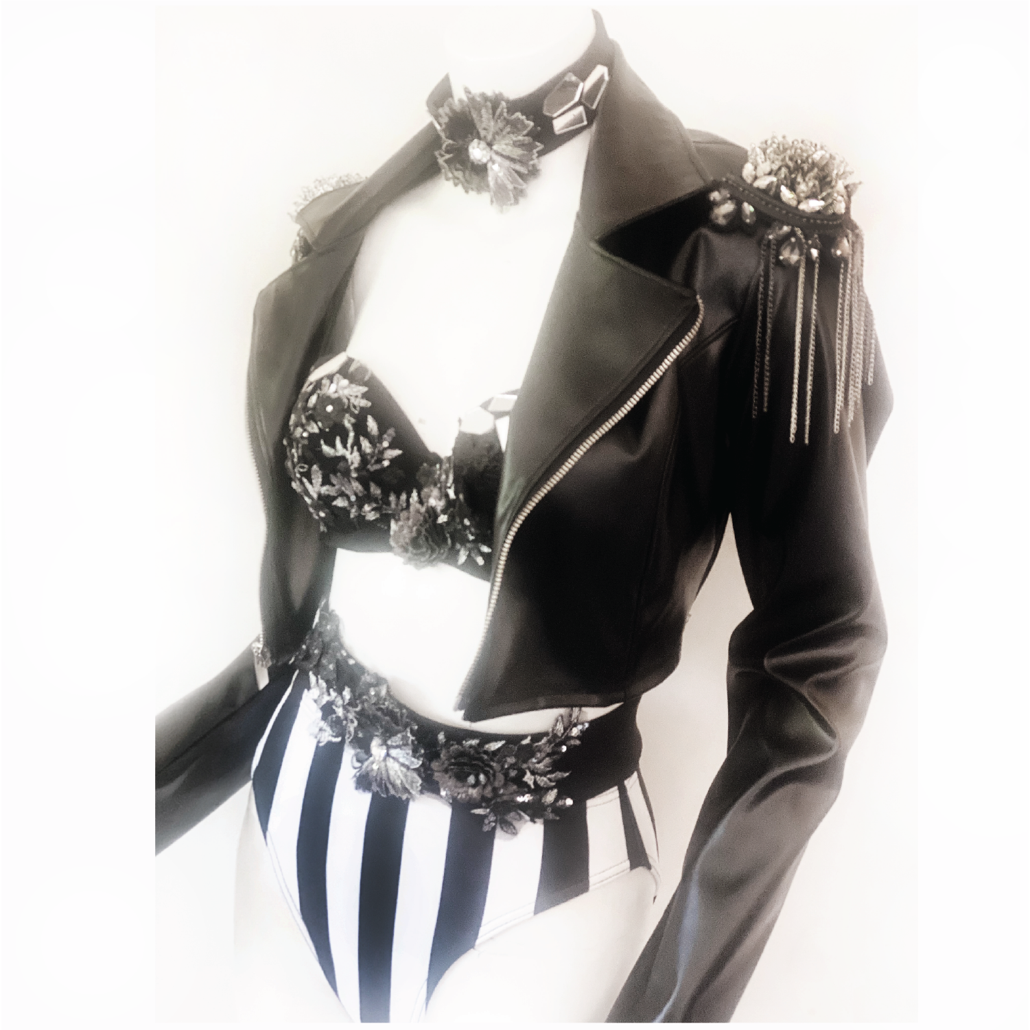 Rock the pool - or the stage! - in this high-cut, high waisted super cheeky bottom. Faux crocodile waist belt not included.