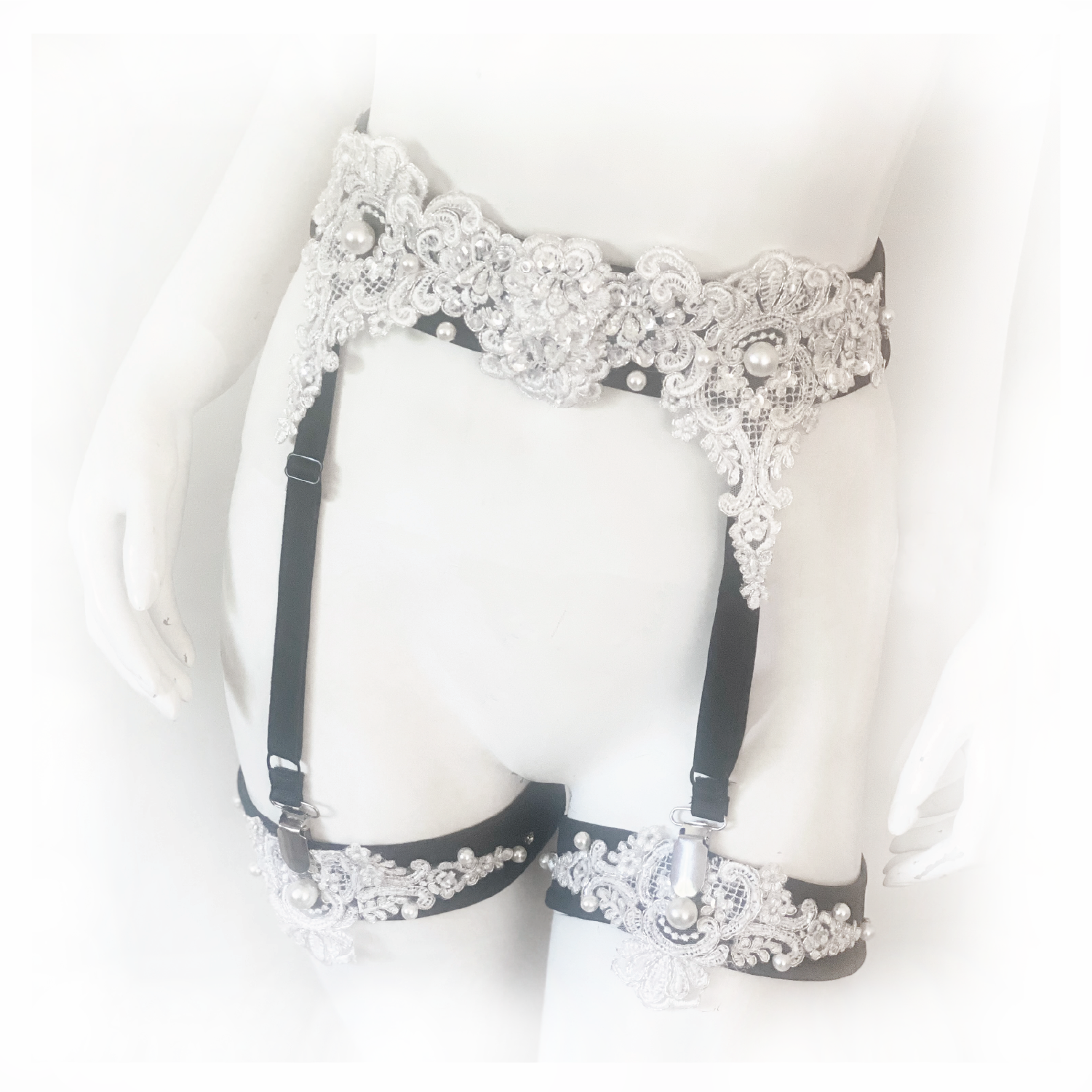 Who says you don't need the cherry on top? This sexy yet elegant garter belt adds the perfect finishing touch to any of our matching briefs, leggings or other Vixen Noir pieces. Garters are detachable and straps can be attached to stockings. Pearl and chain accessory is also detachable.